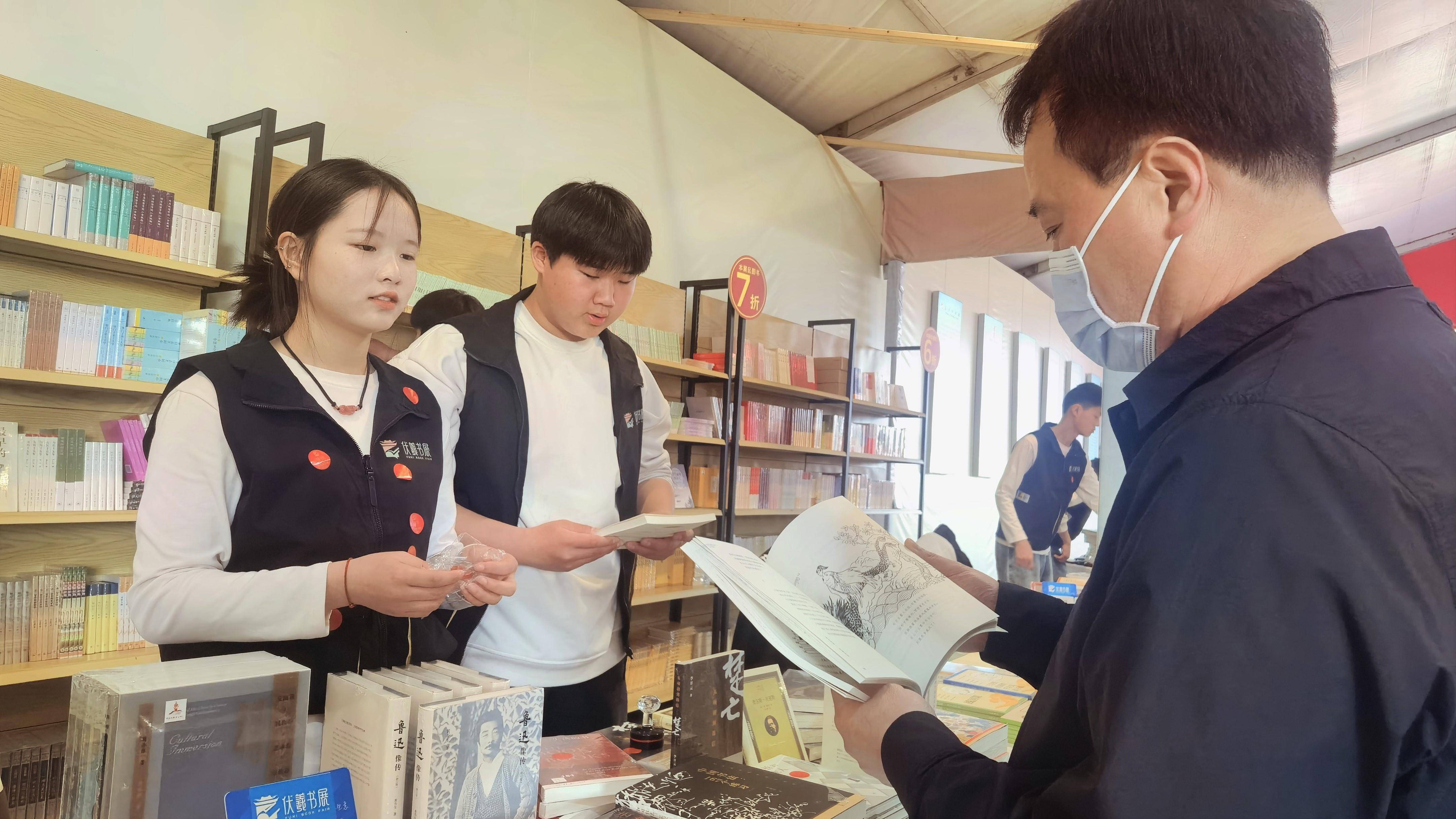“諺語歸諺語,吃壓縮饃可不能讓孩子考上大學(xué),但讀書可以。”張先生拍了拍手上的書說,“我們?cè)臼莵砉鋸R會(huì)的,遠(yuǎn)遠(yuǎn)看到這邊有書展,就帶孩子來接受一下文化熏陶。這本書寫得挺好,故事生動(dòng)有趣,還和我們淮陽的太昊伏羲氏有關(guān),我準(zhǔn)備買下來給孩子作課外讀物。”