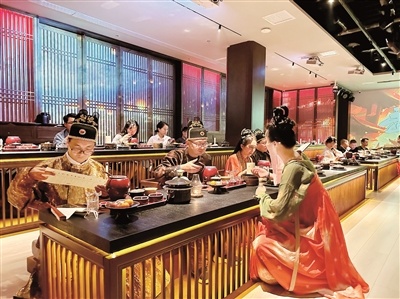 新場(chǎng)景,新在拉長(zhǎng)漢服消費(fèi)鏈條。不同于常見(jiàn)的穿漢服拍照打卡,“武皇盛宴”把漢服消費(fèi)鏈條延伸至餐飲業(yè),拓展了漢服體驗(yàn)新空間,提升了餐飲業(yè)文化味兒,更為消費(fèi)者帶來(lái)了漢服消費(fèi)增值服務(wù)。
