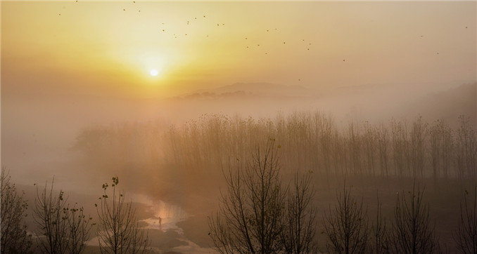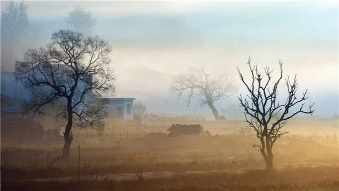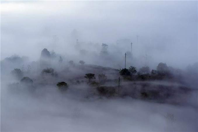 2024年3月中旬,一場春雨過后,河南省信陽市新縣的山村田野間薄霧朦朧。飄渺的晨霧一會兒分散,一會兒聚攏,一會兒徐徐升騰,一會兒滾滾向前,變化莫測,千姿百態(tài),美不勝收。