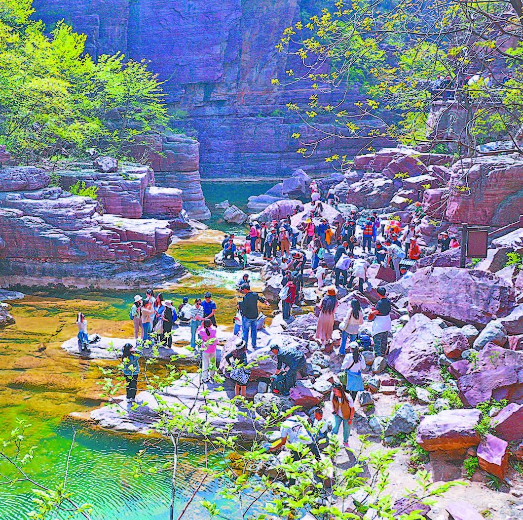 云臺山春意滿滿,景區(qū)內人潮涌動,游人如織。