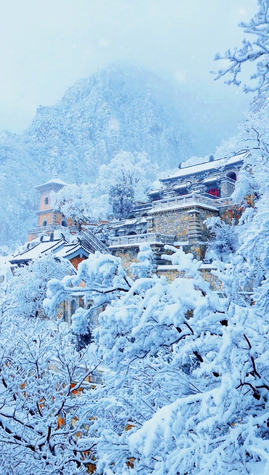 冬日白雪皚皚的嵩山禪院