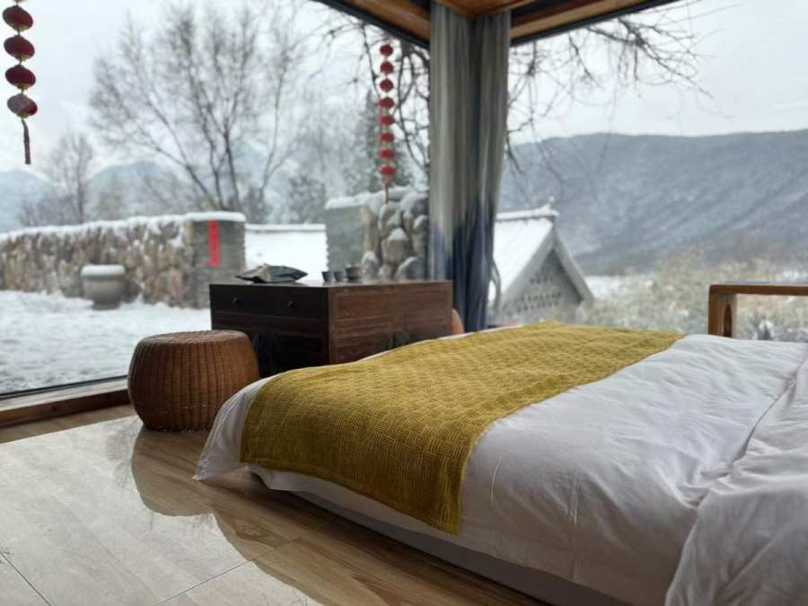 秋冬季節(jié)的禪心居民宿客房窗景
