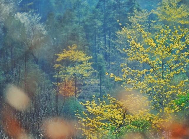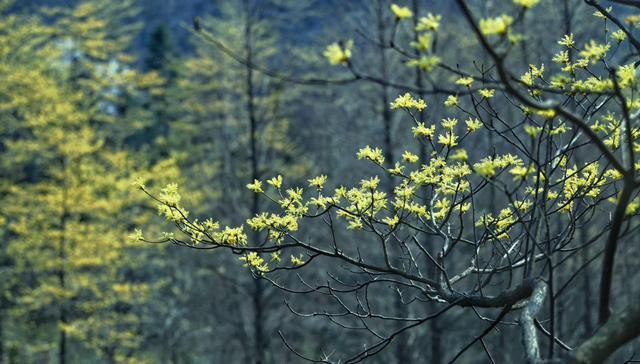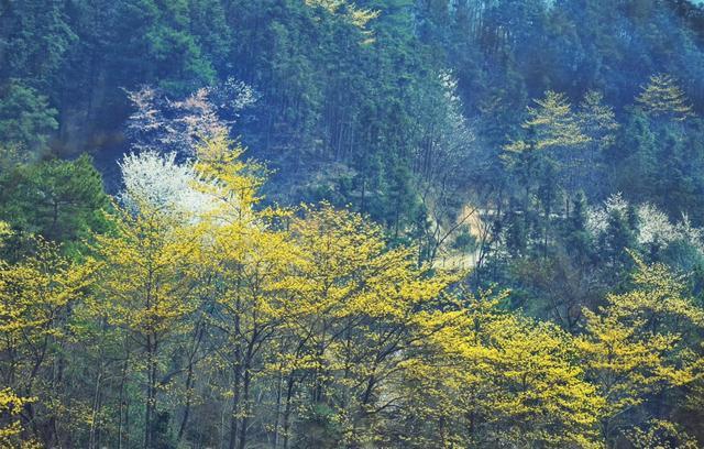 一樹碎金成錦,百花齊放成春。初春時節(jié),行走在新縣陡山河鄉(xiāng)連康山村的山林間,一團團、一簇簇鵝黃色的檫木花悄然綻放、引人注目。