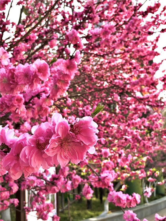 據(jù)鄭州市動(dòng)物園園容中心負(fù)責(zé)人王新明介紹,本屆桃花展共展出70余個(gè)品種近千株桃花,由于今年氣溫較往年低,桃花比往年遲開(kāi)了四五天,目前還有相當(dāng)多的桃花正在打苞,預(yù)計(jì)到本周末會(huì)開(kāi)得更多,下周全部盛開(kāi),整周都是盛花期。最佳打卡地在市動(dòng)物園桃花街和園區(qū)西北部,其中桃花街兩側(cè)擺放盆栽桃花,展出滿(mǎn)天紅、菊花桃、品霞、品紅、壽星桃、鴛鴦垂枝、白花山碧桃、紅雨垂枝、平源膠桃、嫣紅早花、嫣粉嬌香等紅的、粉的、白的,絢麗多彩,美不勝收。