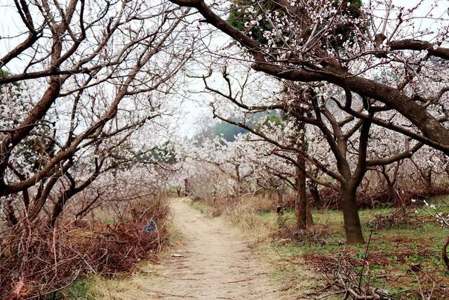 芒碭山旅游區(qū)各處山頭,眾多游客徒步在綿延不斷的杏林中,盡情欣賞杏花叢叢簇簇、相互交錯,叢間蜂飛蝶舞的美麗景色。