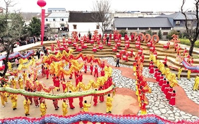 《擊鼓報(bào)春》,百面盤鼓聲勢(shì)浩大、鼓聲震天,激蕩人心,寓意著春潮涌動(dòng),萬物復(fù)蘇;《東方春曉》,40名文化志愿者載歌載舞,以樸素的舞蹈再現(xiàn)先民時(shí)期的生活,寓意在春天的韶光里播種五谷;《祥龍祈春》,9條巨龍上下翻飛、騰挪閃轉(zhuǎn),祈愿風(fēng)調(diào)雨順,天遂人愿。