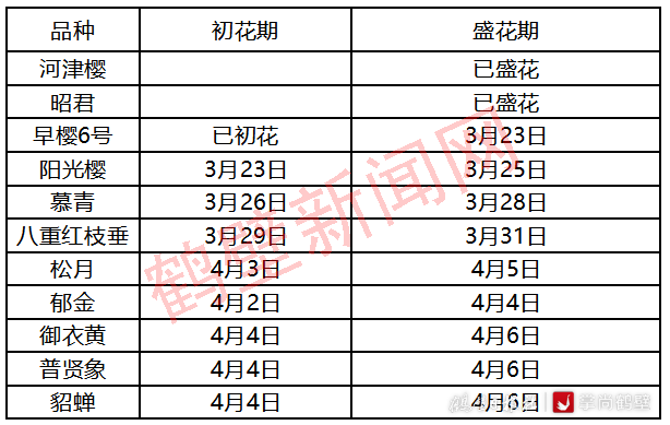 注:櫻花開放時間和花期長短隨天氣變化會略有變動。