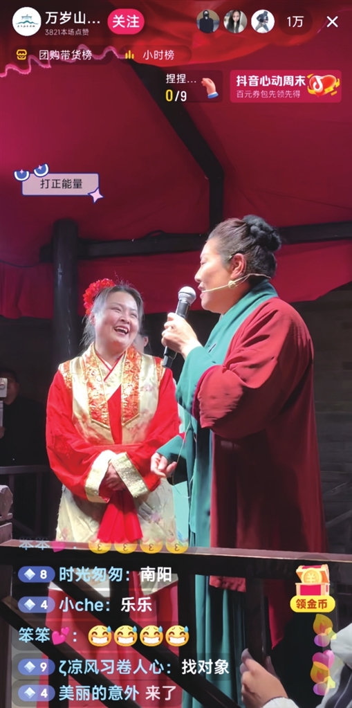 公開信息顯示,“王婆”本人社交賬號已有近百萬的粉絲關注。“王婆”飾演者趙梅今年61歲,已在景區(qū)工作了六年。“王婆說媒”節(jié)目一天兩場,每天上午10點30分,下午3點25分在景區(qū)水滸街王婆茶館開演。游客參與積極性高的時候,會加場一個小時。