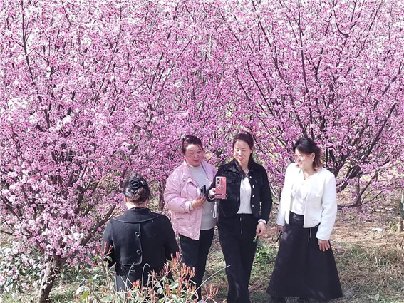 山路上、花樹間,游客三五成群,漫步賞花,拍照留念,許多網(wǎng)紅達(dá)人也來到這里,在花間直播。
