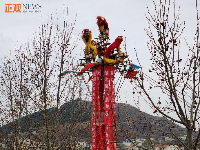 在昂揚的鑼鼓聲中,小相獅子時而凝神蓄勢,時而輾轉(zhuǎn)騰挪,做著各種高難動作。演員們通過地臺、桌凳、高架及高空多種形式的表演,展現(xiàn)其自然大方、穩(wěn)重細膩的高超技藝,讓人連聲叫好。