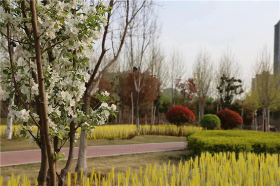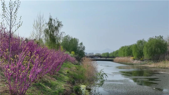 沬水河畔,沬水波光粼粼,河畔綠草如茵,花朵們或含苞待放,或熱烈綻放,形成了一幅幅美麗的畫卷。