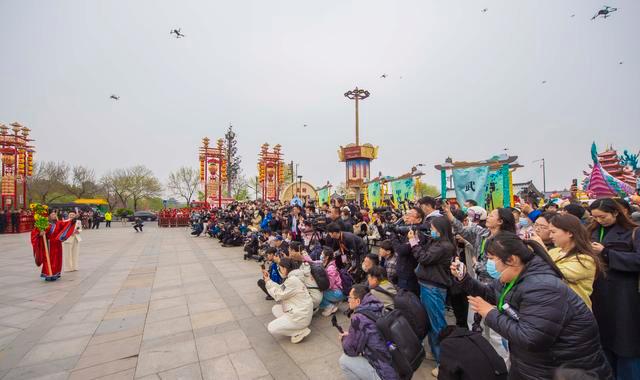 在大巡游中,浩浩蕩蕩的27個巡游方陣從清明上河園一路向東,途徑龍亭午朝門廣場,到達御街新街口。與陸地巡游隊伍同時開啟的還有水上畫舫船隊巡游,船隊從御河七盛角碼頭啟航,與沿岸踏春游人遙相呼應,盡顯開封四月最清明。