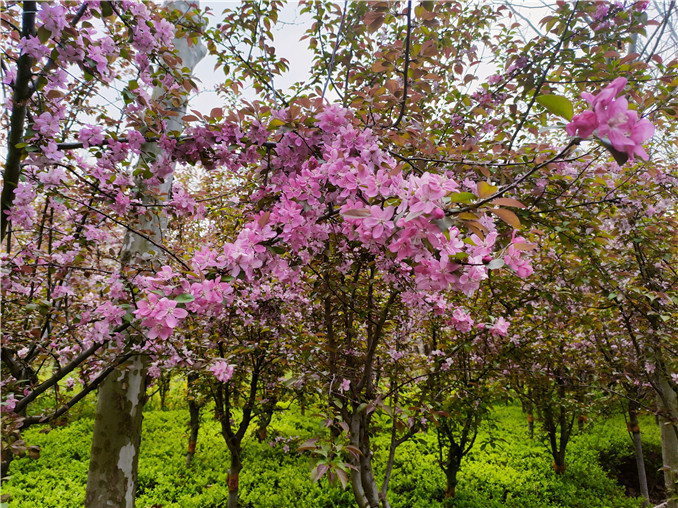 現(xiàn)在樹木園里海棠花開正盛,或深紅、或淺紅、或粉紅、或紫紅,或是紅中透白、白中泛紅,嬌艷欲滴地開在春風(fēng)里,令萬千游客陶醉。
