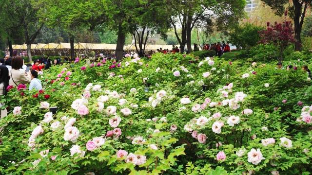 全園共有約65個(gè)品種牡丹開放,主要分布在南園牡丹展覽館、鳳丹林、北園九色臺(tái),其中:盛開的牡丹品種有春柳、如花似玉、彩繪、紅蓮、美艷、明星、藍(lán)月亮、荷包牡丹、粉中冠、富貴滿堂 、洛陽紅 、種生紅等;初開的牡丹品種有 曹州紅、姊妹游春、朝陽紅、綠幕隱玉、太平紅等。園內(nèi) 棣棠、碧桃、櫻花、紫荊、連翹、榆葉梅 等競相綻放。