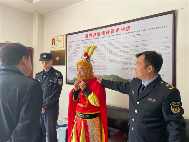 雖然上述兩名“銅人”與“孫悟空”并非本景區(qū)安排,他們進(jìn)入景區(qū)后“換裝”并“誘導(dǎo)”游客消費(fèi)等行為景區(qū)不知情,但是我景區(qū)有不可推卸的責(zé)任。節(jié)假日游客較多,我景區(qū)安保執(zhí)勤等工作人員巡邏排查不到位造成該情況發(fā)生,給部分游客帶來(lái)了不良的游玩體驗(yàn)。
