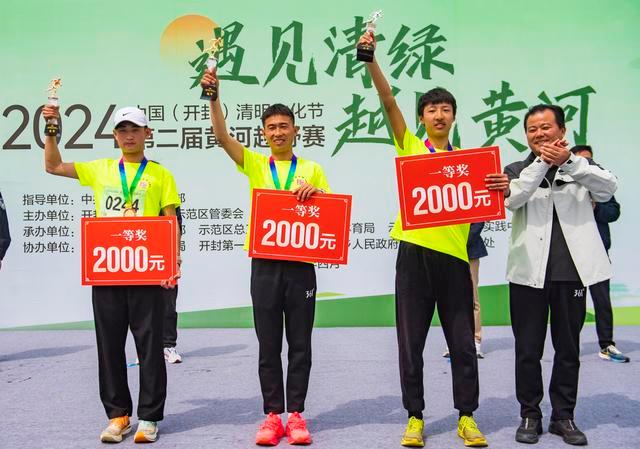 女子組第一名蘇麗芹來自鄭州。她說,第一次來開封參加這樣的活動,賽道很美,一路跑來,感受著春天的氣息和黃河的脈動,不僅是一次體育競技,更是一次心靈與自然的對話。