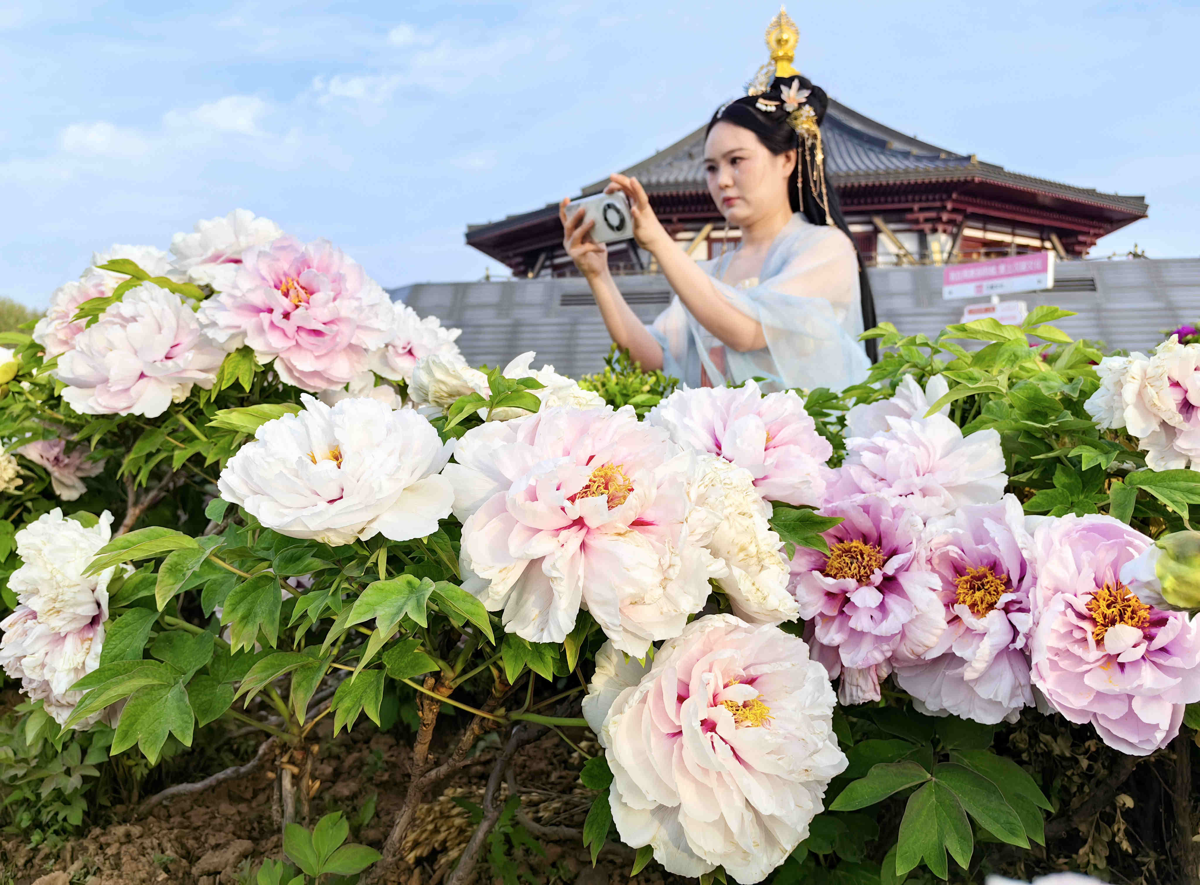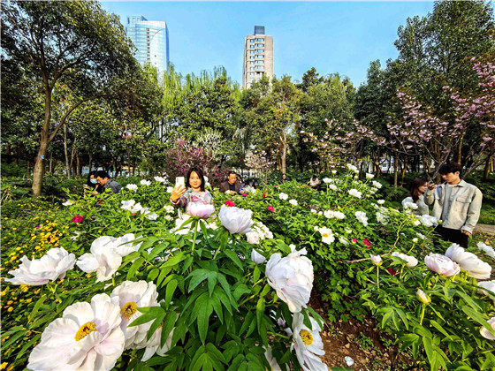 連日來,天氣晴好,河南省洛陽市文旅市場持續(xù)升溫,不少游客專程前來一睹牡丹芳容。 目前,洛陽市區(qū)各牡丹觀賞園內(nèi)自然花期牡丹即將進(jìn)入盛花期,園內(nèi)棣棠、櫻花、丁香、紫荊、碧桃等繁花似錦。張怡熙 攝