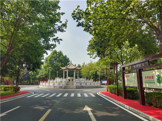 平安和諧、美麗宜居的新鄉(xiāng)市新鄉(xiāng)縣翟坡鎮(zhèn)東大陽堤村朝陽社區(qū)主道路 丁艷冰 攝