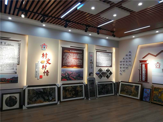 新鄉(xiāng)市新鄉(xiāng)縣翟坡鎮(zhèn)東大陽堤村村史館內(nèi)的太行生態(tài)藝術(shù)畫展 丁艷冰 攝