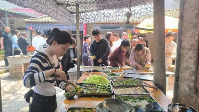走進(jìn)唐窯,水泥道路整潔,花草樹(shù)木葳蕤,環(huán)境優(yōu)美,生態(tài)宜居。記者來(lái)到一個(gè)名叫靈芝坡的農(nóng)家院落,只見(jiàn)各種新鮮蔬菜琳瑯滿目,手工柴火酵子饃、玉米糝子湯、漿面條、刀削面、菜卷、煎餅、油饃、涼粉、米皮等應(yīng)有盡有。一道道農(nóng)家菜充滿了醇香的味道和獨(dú)特的風(fēng)味,從新鮮的食材到精心的烹飪,都展示了大自然的饋贈(zèng)和農(nóng)家的用心。一口口飯鍋中咕嘟咕嘟地冒著熱氣,一切都充滿了期待。無(wú)論是燉、煮、烤還是炒、炸、烹,都讓人流連忘返。柴火在鍋底噼啪作響,炊煙裊裊升起,燴菜香氣四溢。掀起鍋蓋,用勺子攪拌漿面條,滿眼都是難以抵擋的誘惑,讓人垂涎欲滴。山野間的野菜,帶來(lái)雨后清新的味道。濃郁的鄉(xiāng)村風(fēng)味,讓人仿佛置身于田園之中。幾碗飯、幾碟菜,三五好友圍桌而坐,分享美味佳肴,談天說(shuō)地,其樂(lè)融融。
