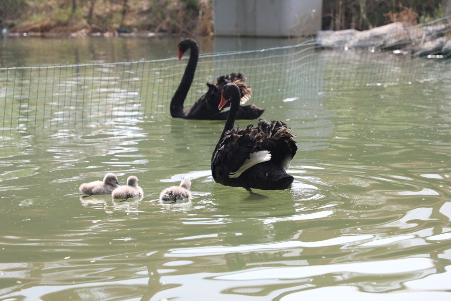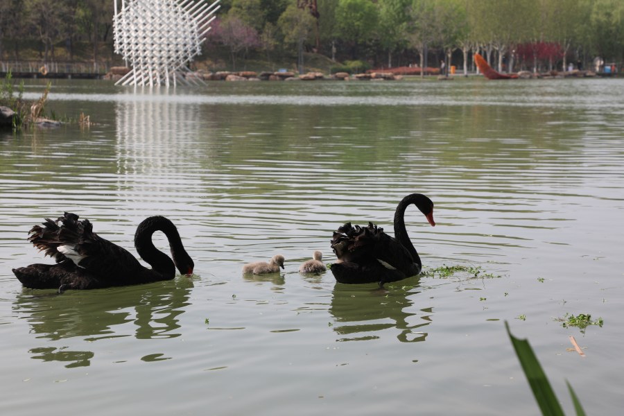 4月11日,記者在鄭州市雕塑公園看到,湖面水清岸綠、水鳥蹁躚,3只小小的黑天鵝寶寶一亮相便成為了市民游客的“團寵”。毛茸茸的它們非?蓯郏m然羽毛仍呈淺灰色,但已不像剛出生時那般嬌弱,正在湖面上隨親鳥悠然嬉戲,并在親鳥的帶領(lǐng)下學(xué)習(xí)覓食。