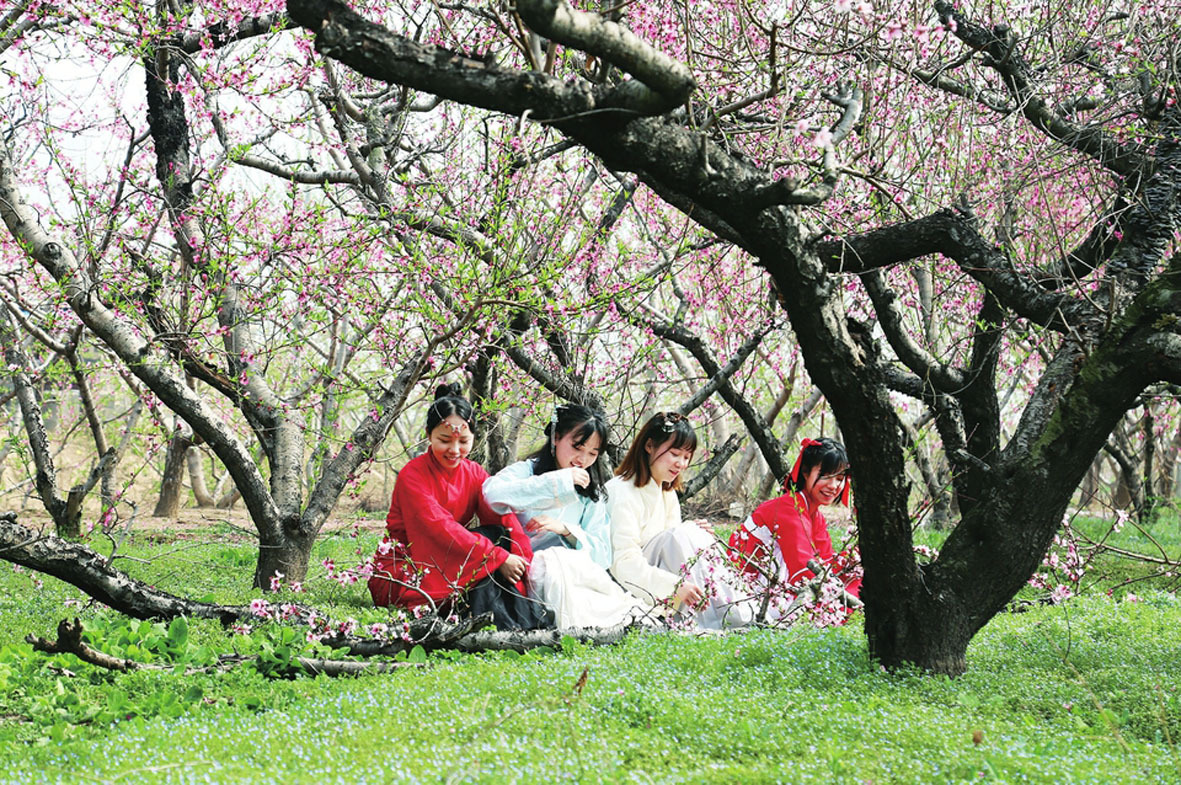 春風(fēng)拂面百花開,最美春天從芒碭山的花枝間開始。每年3月下旬至4月上旬,芒碭山旅游區(qū)周邊萬畝桃花漫山遍野絢爛開放,高低起伏的花海一望無垠,一派春意盎然的醉人景象。“今年因氣溫原因,桃花開得比往年晚,清明時正值盛花期。我們借助‘花經(jīng)濟(jì)’賦能文旅融合,將賞桃花與假期旅游、民俗文化、住宿餐飲等密切結(jié)合,極大拉動了旅游客流。”芒碭山旅游區(qū)負(fù)責(zé)人劉瑩瑩介紹。2024年清明節(jié)前后,芒碭山旅游區(qū)依托周邊萬畝桃花次第盛開的優(yōu)勢,通過新媒體直播團(tuán)隊不斷加大旅游區(qū)品牌宣推力度,以深度體驗的方式推介芒碭山桃花和旅游區(qū)好看、好玩的地方,吸引全國各地游客特別是永城周邊游客走進(jìn)芒碭山、感受芒碭山。其間,累計吸引7萬多人到芒碭山賞花,帶動旅游區(qū)門票、住宿、餐飲、購物等旅游收入大幅增長,清明節(jié)假期文旅市場更是持續(xù)高位運行,游客數(shù)量、旅游消費均創(chuàng)下近5年同期新高,實現(xiàn)了文化效益和經(jīng)濟(jì)效益相統(tǒng)一。