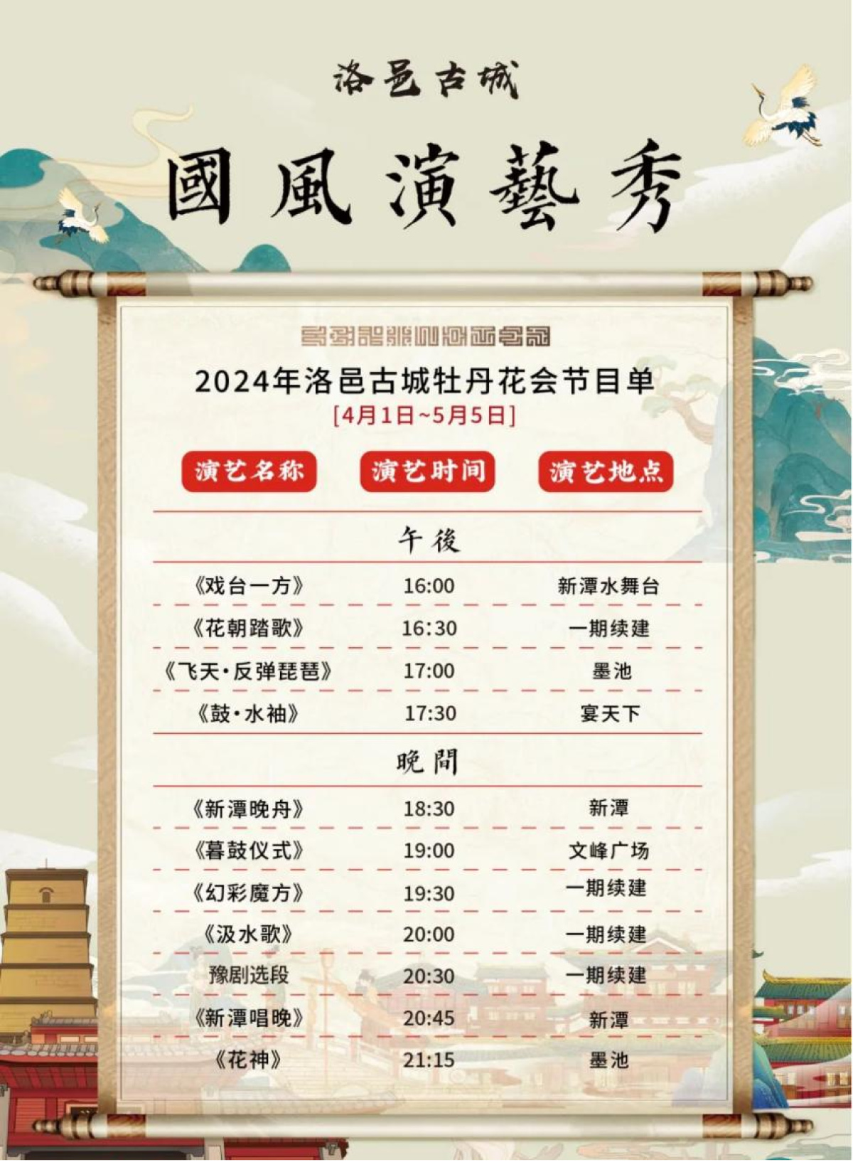 洛邑古城以“牡丹傾國色·邑城覽芳華”為主題,設置“沉浸式”游園、賞燈路線,組織開展全景“沉浸式”國風詩畫表演。在隋唐洛陽城國家遺址公園應天門遺址博物館,升級版沉浸式演藝《唐宮樂宴》正待上演;在洛陽大河薈,一場場精彩的《尋跡洛神賦》帶大家行浸式了解洛陽的從古至今……洛陽依托歷史文化古跡,將經(jīng)典故事與歌舞等藝術(shù)形式相結(jié)合,打造出異彩紛呈的“夜演”項目,豐富游客在洛游玩的夜間選擇。