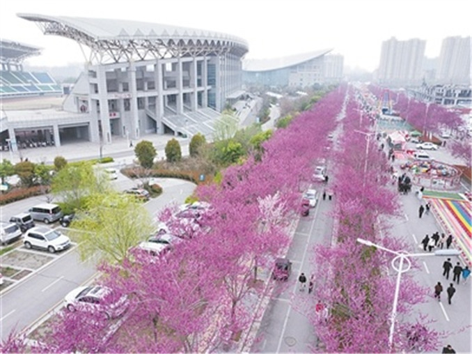 位于汝州市體育中心農業(yè)路的紫荊大道長約3km,路兩邊各種植3排紫荊名優(yōu)新品,樹高可達20-30米,花期3月中旬到4月上旬。每年這個時候,紫荊大道玫紅色似紫蝶般的花朵先葉綻放,密密匝匝,簇生于枝條上,花木馥郁繁茂,形成花團錦簇的觀賞長廊,被譽為汝州“紫荊花觀賞第一路”“網紅打卡地”。