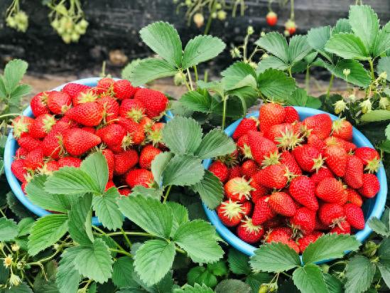 當(dāng)前,草莓已進入采摘期,這片土地不僅催生了“采摘經(jīng)濟”的繁榮,還為周邊地區(qū)300余名村民提供了家門口的就業(yè)機會。“在這兒摘草莓,一天能掙70塊錢,還不耽誤照顧家里。”正在棚中干活的村民張大姐說。