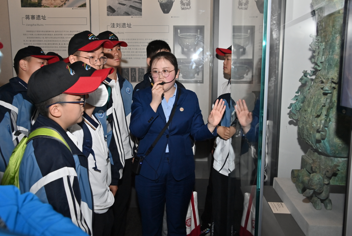 在鄭州百年考古展廳和中華牙璋展廳,師生們繼續(xù)探索著歷史的奧秘。講解員通過生動(dòng)有趣的方式,將復(fù)雜的考古知識變得通俗易懂,讓學(xué)生們深刻感受中華文化的魅力。特別是“象棋中的楚河漢界淵源與河南滎陽的漢霸二王城”等古今結(jié)合的知識點(diǎn)面前,講解員將遺址文化與人們生活中的娛樂項(xiàng)目巧妙連接起來,讓同學(xué)們能夠更直觀地理解這段歷史。