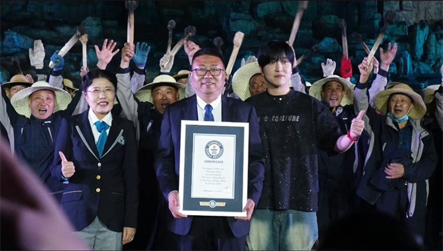 活動現(xiàn)場,游客的叫好聲和驚嘆聲不絕于耳,108位 “打鐵花”非遺傳承人穿梭在滾燙的“鐵花”中,觀眾們紛紛舉起手機,記錄下這美麗、滾燙、燦爛的場面。“這是震撼人心的千年絕技,司徒小鎮(zhèn)打鐵花吉尼斯紀(jì)錄申報成功”。在認(rèn)證官核對完所有挑戰(zhàn)結(jié)果后,公證人員宣布申報成功。最后,現(xiàn)場游客在一片沸騰聲中結(jié)束了在司徒小鎮(zhèn)觀看千年鐵魂的愉快體驗。
