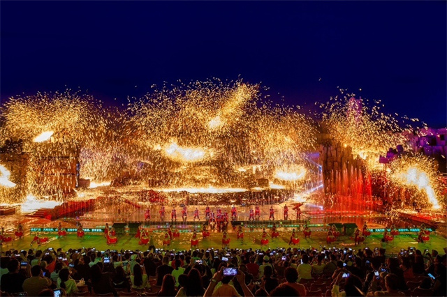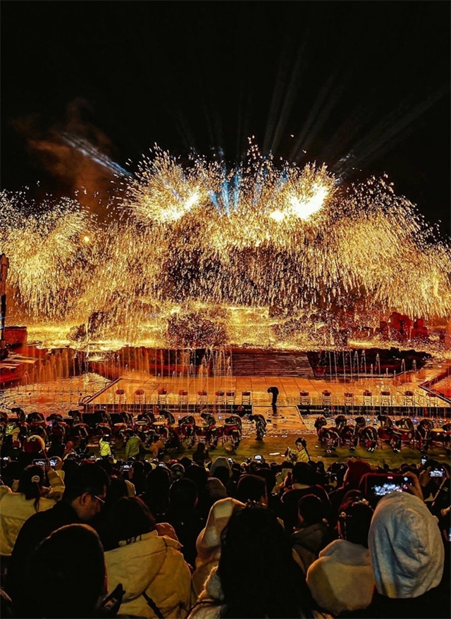 鐵樹銀花落,萬點星辰開。傍晚時分,司徒小鎮(zhèn)“千年鐵魂”實景演出現(xiàn)場人山人海,來自全國近千名網(wǎng)絡(luò)達人、百余家媒體與4000多萬粉絲達人白冰一起,共同見證新的打鐵花吉尼斯紀(jì)錄™稱號。隨著吉尼斯紀(jì)錄認(rèn)證官宣布活動正式開始,眾人期盼的打鐵花震撼上演,只見1600攝氏度的鐵汁在高空中被擊打成鐵花,鐵花猶如雨點落下。“我今天還是第一次在現(xiàn)場看‘打鐵花’。” 來自鄭州的游客劉新說,“我只能用‘震撼’來形容今晚的場面,只能用‘激動’來形容我現(xiàn)在的心情。