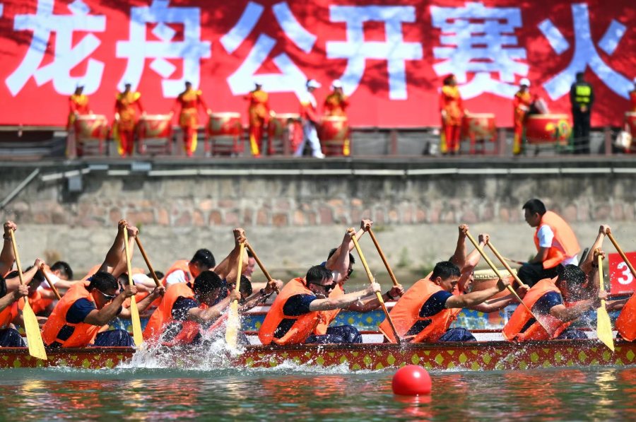 開幕式現(xiàn)場,賽事組委會(huì)特別在比賽水域中搭建了500平方米的舞臺(tái),舞龍舞獅、武術(shù)、歌舞等節(jié)目依次上演為比賽預(yù)熱,營造出了歡樂的節(jié)日氛圍。隨后,岸邊特設(shè)的100面戰(zhàn)鼓同時(shí)擂響,觀眾齊聲吶喊,比賽由此正式揭開戰(zhàn)幕。本次龍舟大賽將持續(xù)兩天,于5月2日下午決出各個(gè)組別的冠軍。