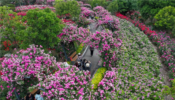 如果要拍最美的月季花?梢詠(lái)月季公園,五一期間,這里有月季花展供市民、游客欣賞。