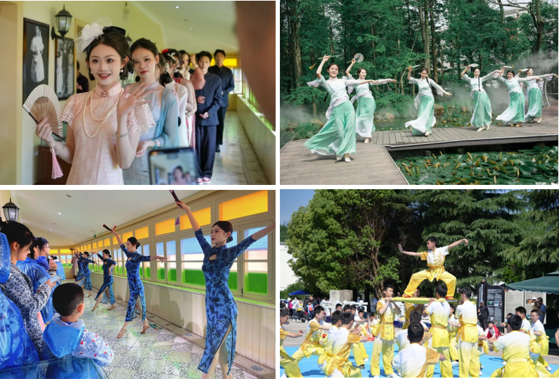 國風(fēng)潮玩沉浸式互動:景區(qū)開展了花漾旗袍NPC巡游、旗袍文化舞蹈秀、經(jīng)典民樂合奏、武術(shù)表演等系列節(jié)目演出,邀請了來自全國各地的傳統(tǒng)文化愛好者以旗袍、中山裝、漢服等妝造,為廣大游客帶來了精彩的現(xiàn)場表演。