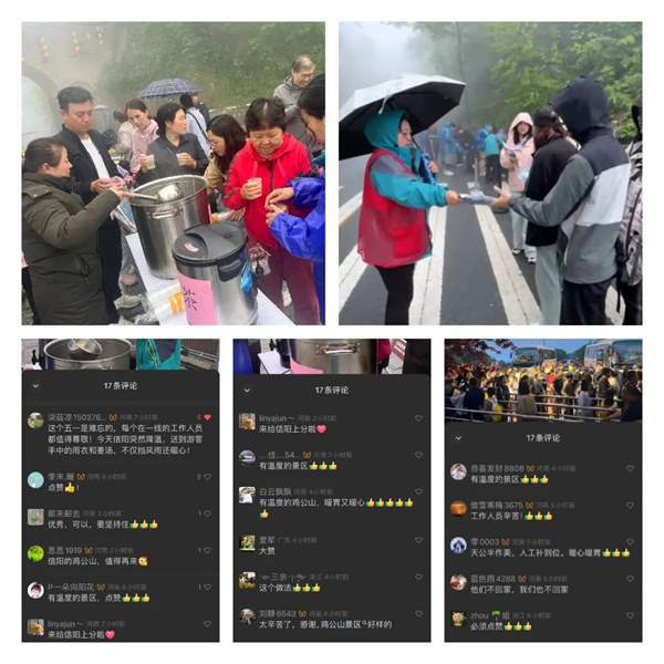 同時又為游客送上了姜茶驅(qū)寒保暖