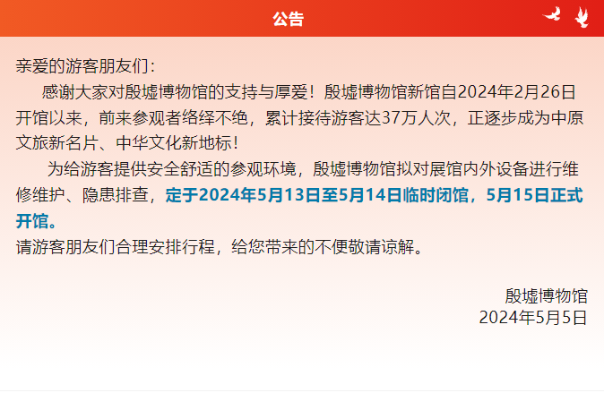 殷墟博物館臨時(shí)閉館公告