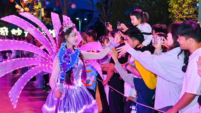 今年五一,夜經(jīng)濟持續(xù)火熱。鄭州海昌連開五天夜場,并推出全新主題的千架無人機表演“海天鯨艷光影秀”,以鳳舞九天、人魚入海、奧特曼等全新演藝主題,與“鄭州之眼”摩天輪聯(lián)動,為游客打造絕美的視覺盛宴;全網(wǎng)播放量破10億,被央視多次報道的人魚NPC限時返場,和帥氣的人魚王子上演深海甜蜜愛戀,游客紛紛打卡記錄,刷屏朋友圈。還有夜場海洋機甲大巡游、蹦迪狂歡派對、國風快閃、夢想爭霸賽等五一特別活動,每天近百場精彩演出,超5萬只海洋極地動物,十余項游樂設備,不間斷地為游客帶去歡樂。