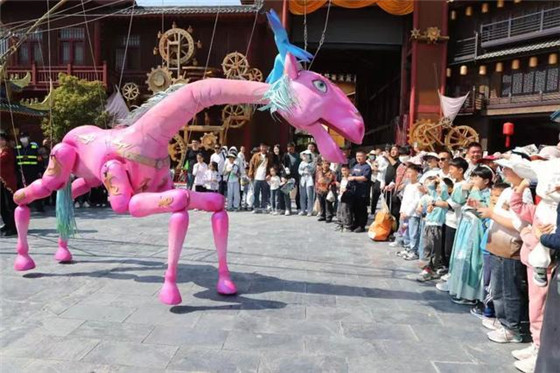 “五一”小長(zhǎng)假,開(kāi)封市文旅多元供給,旅游演藝好戲連臺(tái)。其中,清明上河園景區(qū)傀儡狂歡節(jié),《岳飛•郾城大捷》《打鐵花之盛世大宋》《大宋•東京保衛(wèi)戰(zhàn)》等百場(chǎng)精彩演出震撼上演,《大宋•東京夢(mèng)華》五天共演出16場(chǎng),場(chǎng)場(chǎng)爆滿(mǎn),景區(qū)活動(dòng)期間演出累計(jì)近千場(chǎng);萬(wàn)歲山武俠城以“武俠演繹、江湖豪情”為主題,每天近二百場(chǎng)演出,為游客帶來(lái)一場(chǎng)穿越江湖的視聽(tīng)盛宴,《三打祝家莊》《打鐵花》《王婆說(shuō)媒》等節(jié)目繼續(xù)上演;開(kāi)封府二期非遺街區(qū)新增宋代特色《民間雜藝》表演,雜技、接火棍、口中噴火等民間絕活依次亮相;龍亭公園推出“來(lái)大宋入宮上朝”主題沉浸式劇本殺活動(dòng)、“西園雅集”主題活動(dòng),還原西園雅集國(guó)風(fēng)場(chǎng)景;翰園碑林帶來(lái)書(shū)法描紅、漆扇、拓片等數(shù)十種文化沉浸體驗(yàn)。