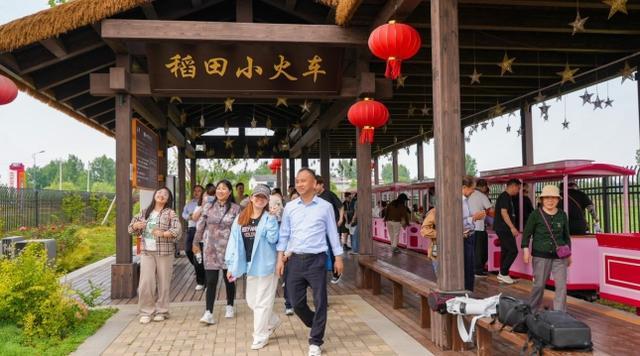 景區(qū)稻田小火車站點(diǎn),更是吸引了大量游客,售票口前排起了長隊(duì)。隨著笛聲鳴響,車輪與鐵軌輕輕撞擊,小火車緩緩駛出站臺(tái)。游客們乘著小火車,穿過稻田,田園景色盡收眼底。