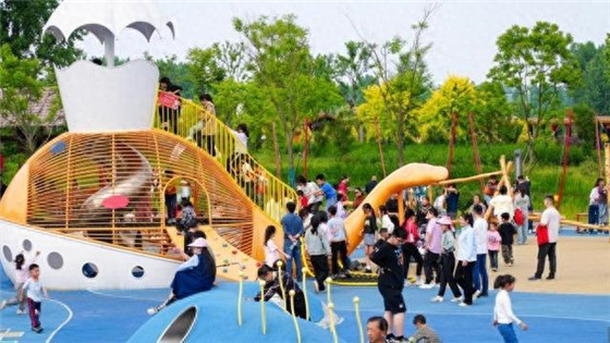 光山縣一小學(xué)生馮伊晗:“今天玩的太開心了,我和我的爸爸媽媽先坐了小火車,后來又到了這里來,和小伙伴們一起玩了滑滑梯、蹦蹦床,實(shí)在是太開心了,下次我還要在這里來玩。”