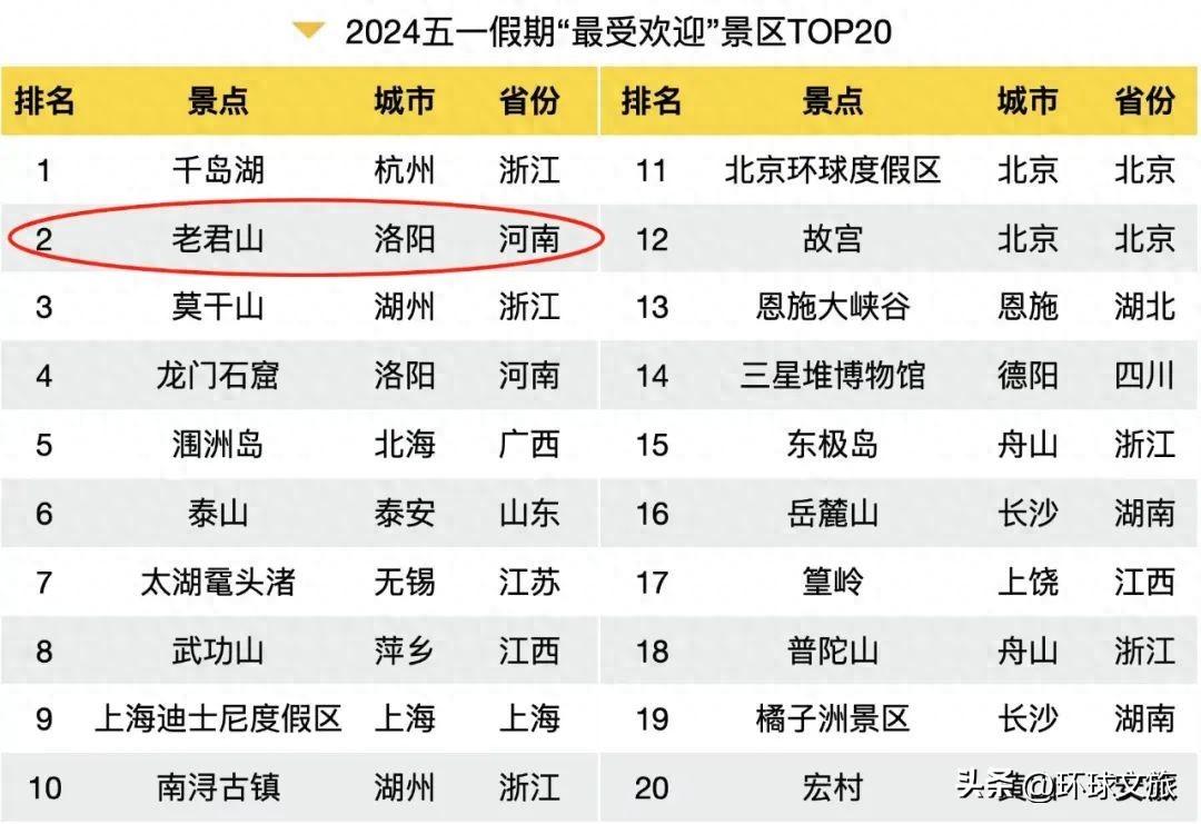 近日,“五一”假期“最受歡迎”景區(qū)TOP20出爐,其中老君山位列第二。此外,華中地區(qū)熱門目的地TOP20出爐,欒川位列第6。