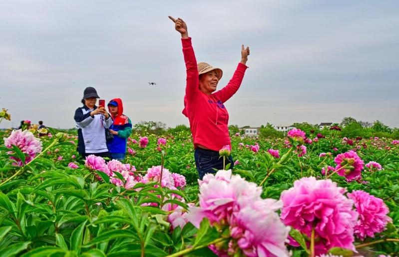 5月6日下午,在洛陽(yáng)市孟津區(qū)朝陽(yáng)鎮(zhèn)石溝村的“ 千卉谷”芍藥種植基地里,大片芍藥花競(jìng)相綻放,吸引來(lái)大批游客前來(lái)觀賞拍照。