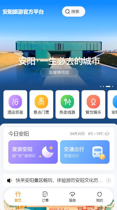 據(jù)了解,安陽文旅智慧旅游服務(wù)平臺(tái)以“旅游+科技”為抓手,整合“食、住、行、游、購、娛、學(xué)、商、養(yǎng)”等各項(xiàng)文旅資源及線上線下服務(wù),把平臺(tái)作為對(duì)外服務(wù)窗口,深化旅游行業(yè)管理、旅游服務(wù)升級(jí)和旅游企業(yè)發(fā)展,推動(dòng)數(shù)字文旅產(chǎn)業(yè)發(fā)展,打造新業(yè)態(tài)、新賽道,促進(jìn)我市文旅產(chǎn)業(yè)的全面升級(jí)和高品質(zhì)發(fā)展。