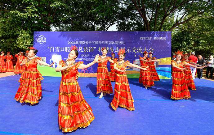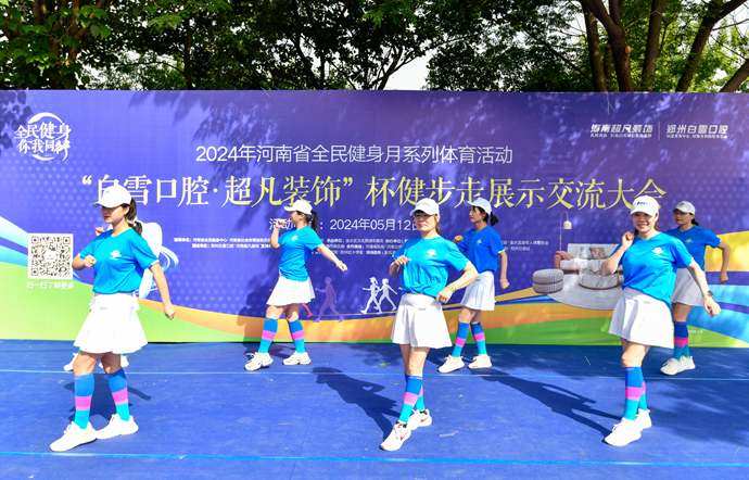 5月12日上午,鄭州東風(fēng)渠濱河公園內(nèi)熱鬧異常,2024年全民健身月系列體育活動暨“白雪口腔•超凡裝飾”杯健步走展示交流大賽在此舉行。現(xiàn)場聚集了1500多位參賽者,他們來自鄭州轄區(qū)的40多支團(tuán)隊(duì)。隨著比賽的開啟,各團(tuán)隊(duì)精神抖擻,街舞、民族舞、健美操等多形式的表演引起了現(xiàn)場陣陣歡呼。公園里彩旗飄揚(yáng),參賽選手們的熱情與活力感染著每一個人。
