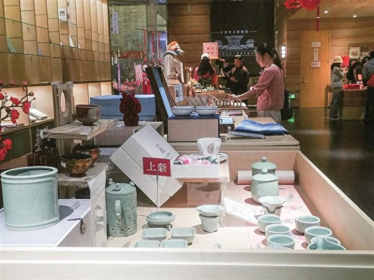 日前,中國考古博物館展出中華老字號弘寶汝瓷范隨州、王振芳大師夫婦聯(lián)袂創(chuàng)作的“三犧尊”“凱旋杯”“問鼎茶組”“汝瓷方鼎”等以考古出土國寶級文物為題材的非遺系列文創(chuàng)作品。