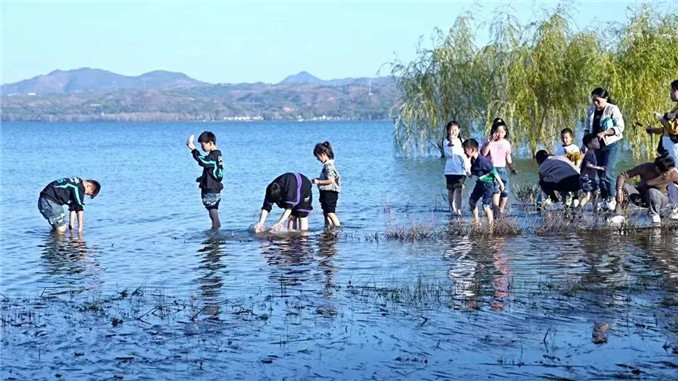 山間的盈盈綠波,是自然的贊歌,大人們閑話家常,孩子們歡暢戲水,享受這得天獨(dú)厚的饋贈(zèng)。