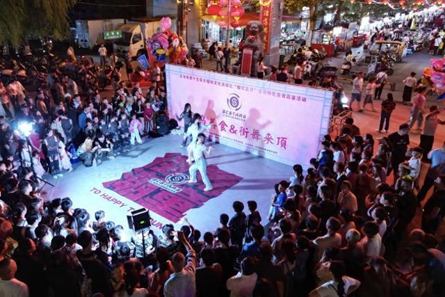 5月18日傍晚,義馬市狂口社區(qū)光明小吃街上,一邊是激情的舞蹈,一邊是美食飄香,游客熙攘、熱鬧非凡。這是義馬市第十五屆大櫻桃文化活動(dòng)的一項(xiàng)子活動(dòng)——“櫻紅五月”美食品鑒活動(dòng)的一幕。
