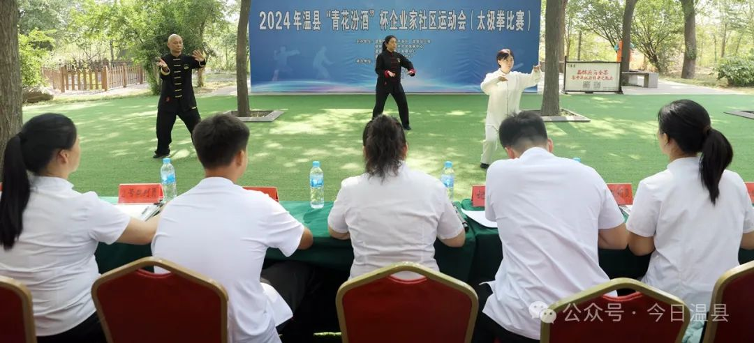 比賽以三名選手為一組,演練傳統(tǒng)太極拳套路,裁判員對每名選手的表現(xiàn)進行現(xiàn)場打分。此次比賽吸引省內(nèi)外近百名太極拳愛好者同臺比拼切磋交流太極技藝。