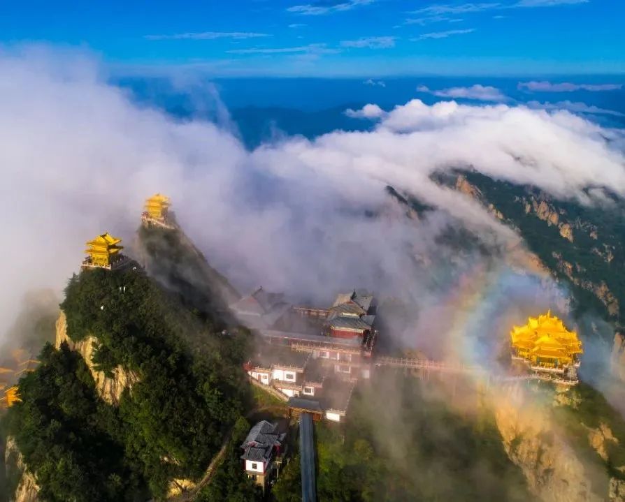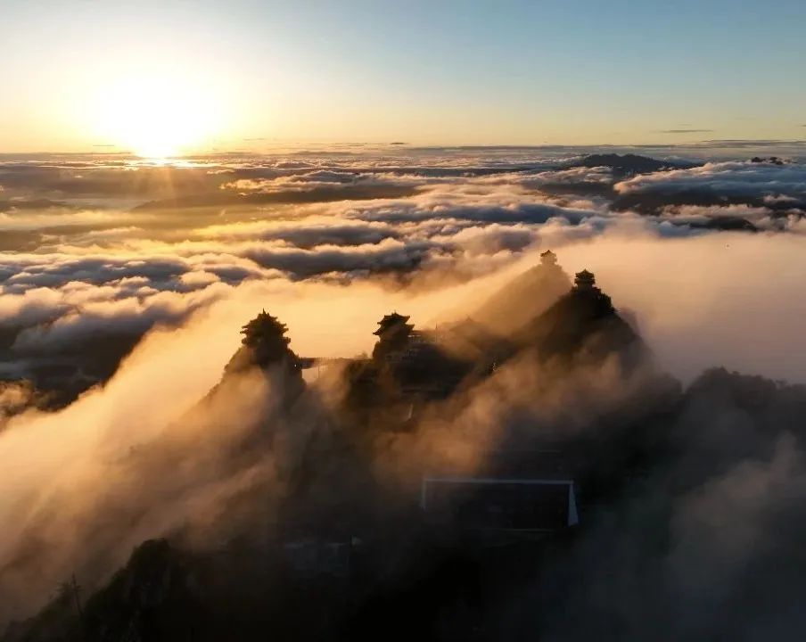 據(jù)悉,該套郵票一套九枚,最后一枚郵票圖案以老君山為設(shè)計素材,圖案名稱擬定為《金頂增輝》。